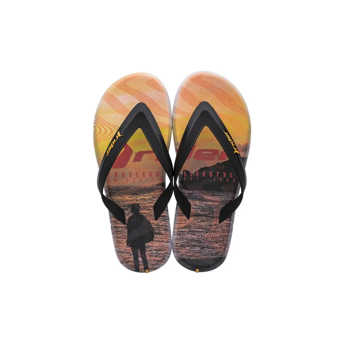 L'infradito R1 Energy di Rider presenta fasce di larghezza intermedia dall'effetto tridimensionale ottenuto grazie a volumi e texture diversificati. La suola garantisce massimo comfort, mentre le stampe colorate e vivaci rendono questo modello il simbolo dell'estate. Le nuove grafiche si ispirano ai tardi pomeriggi d'estate, quando il tramonto colora il cielo di nuances pazzesche.
